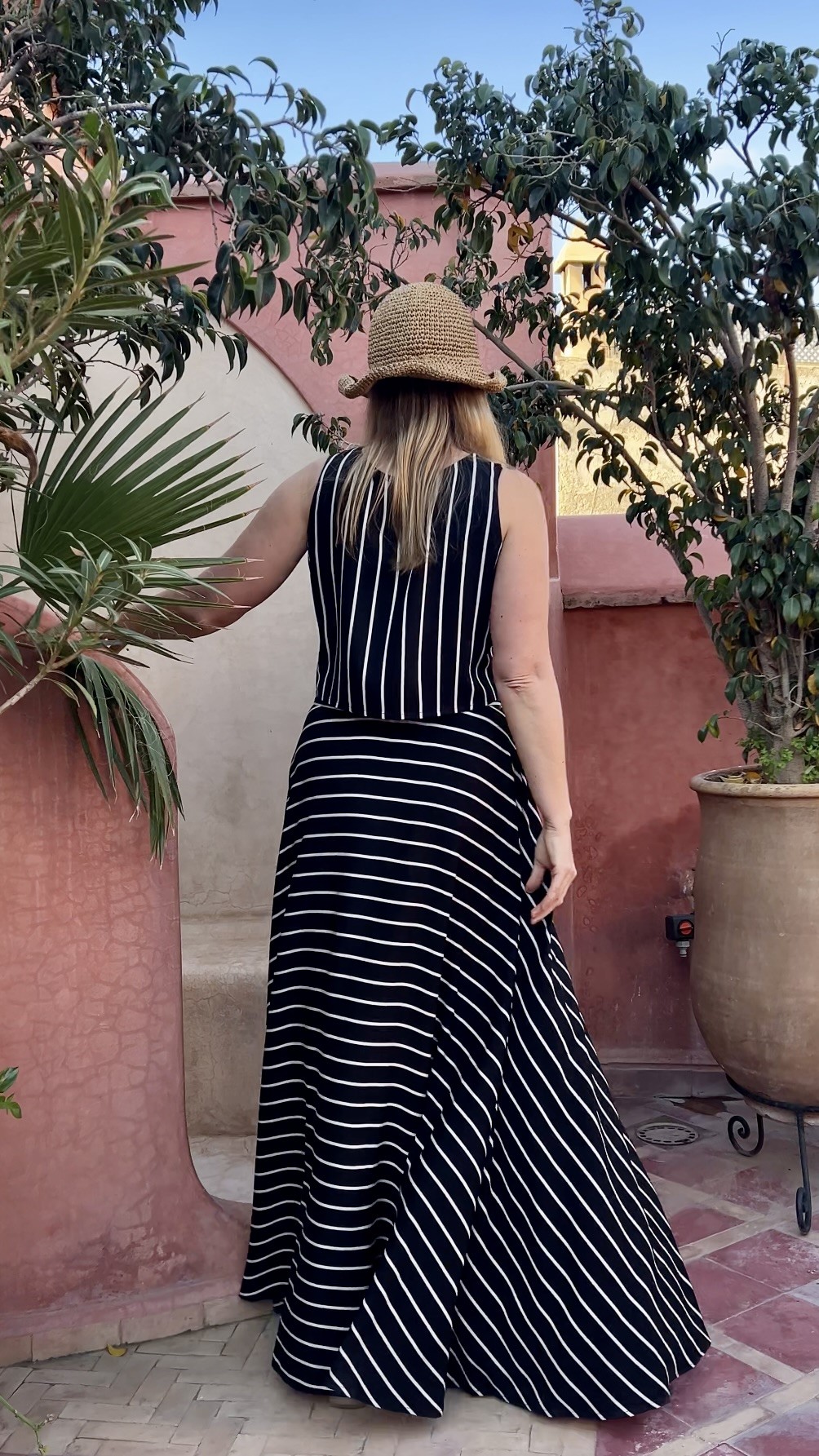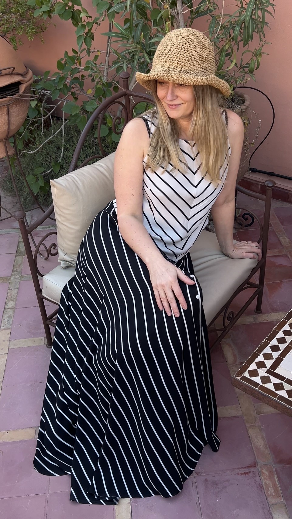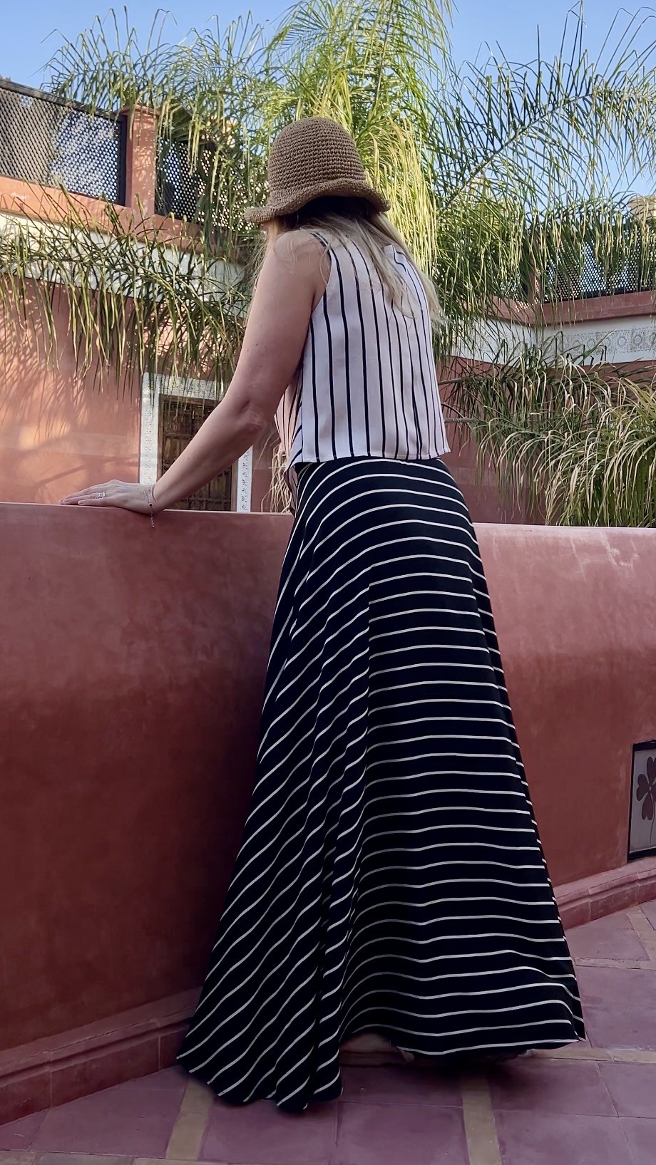 Elegancka i niezwykle kobieca długa spódnica wykonana w 100% z lekkiej, oddychającej wiskozy. Czarna baza przełamana subtelnymi beżowymi paseczkami nadaje jej ponadczasowego charakteru i sprawia, że świetnie sprawdzi się zarówno w codziennych stylizacjach, jak i na bardziej wyjątkowe okazje.