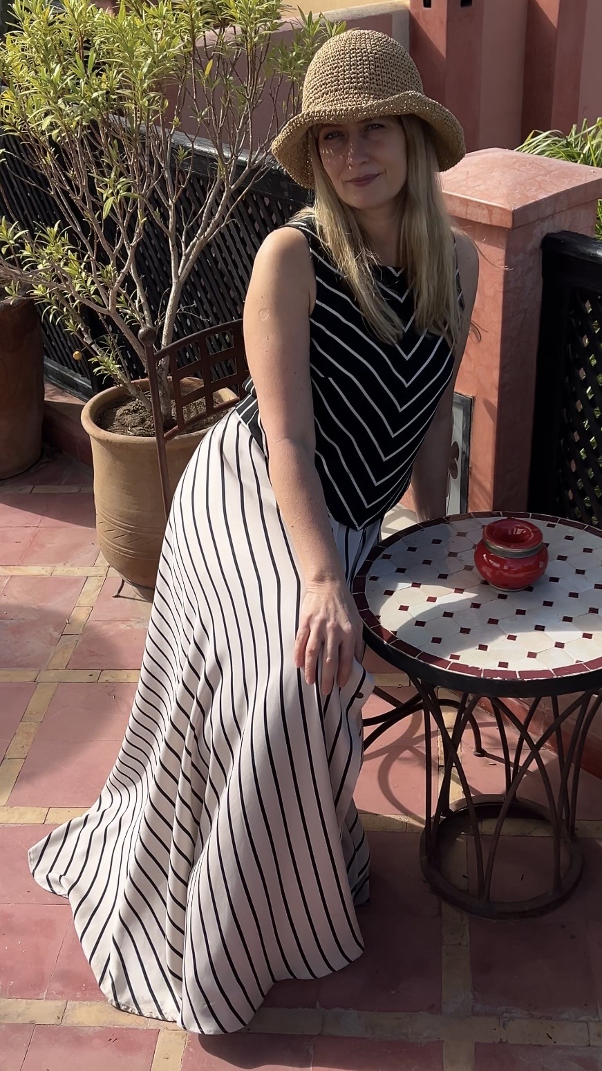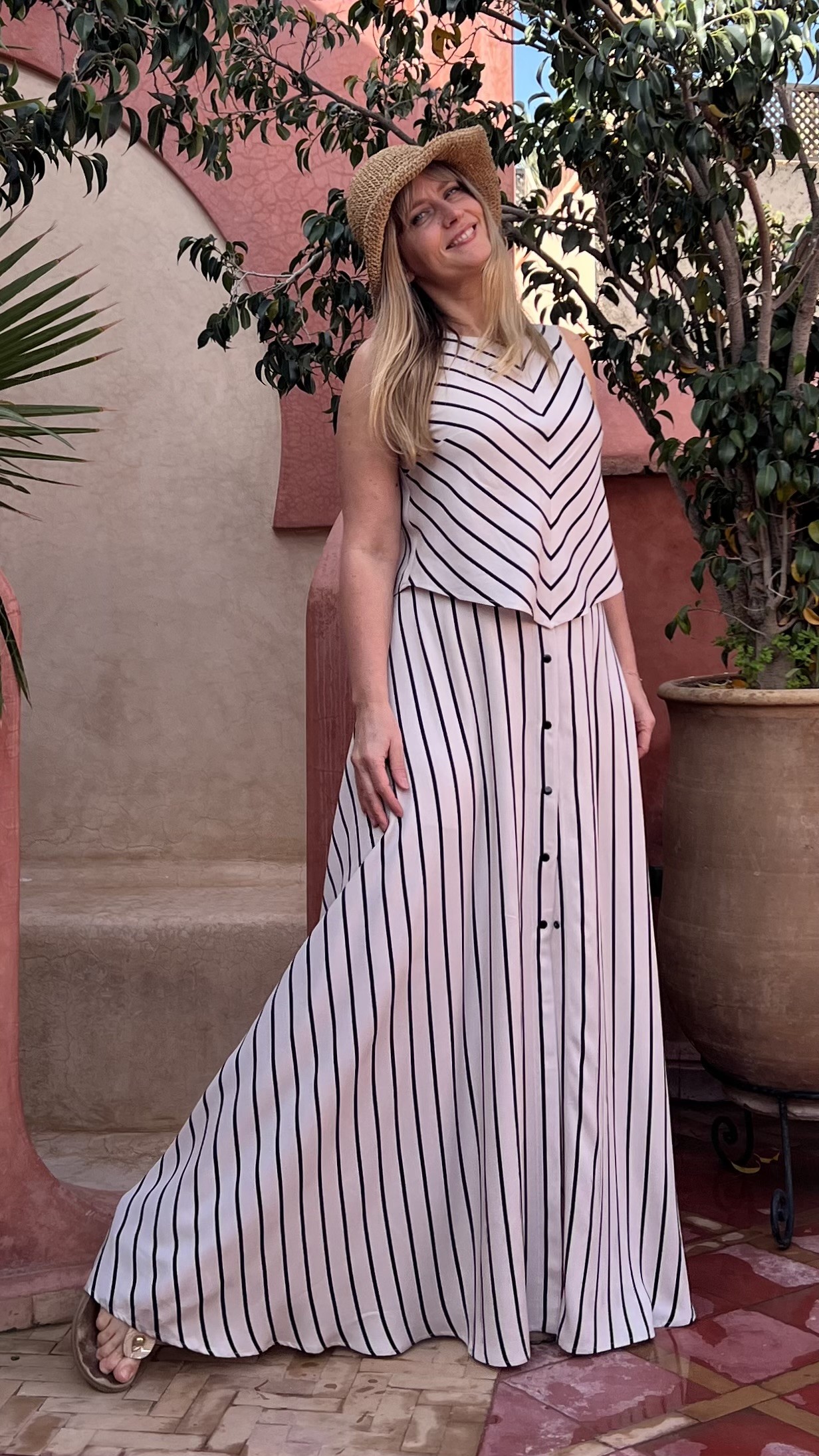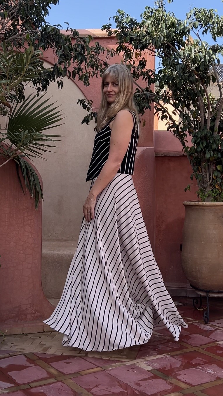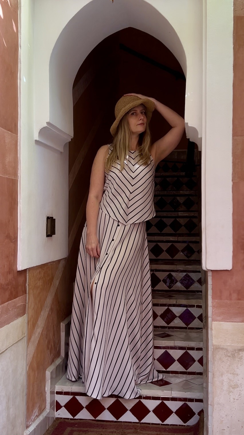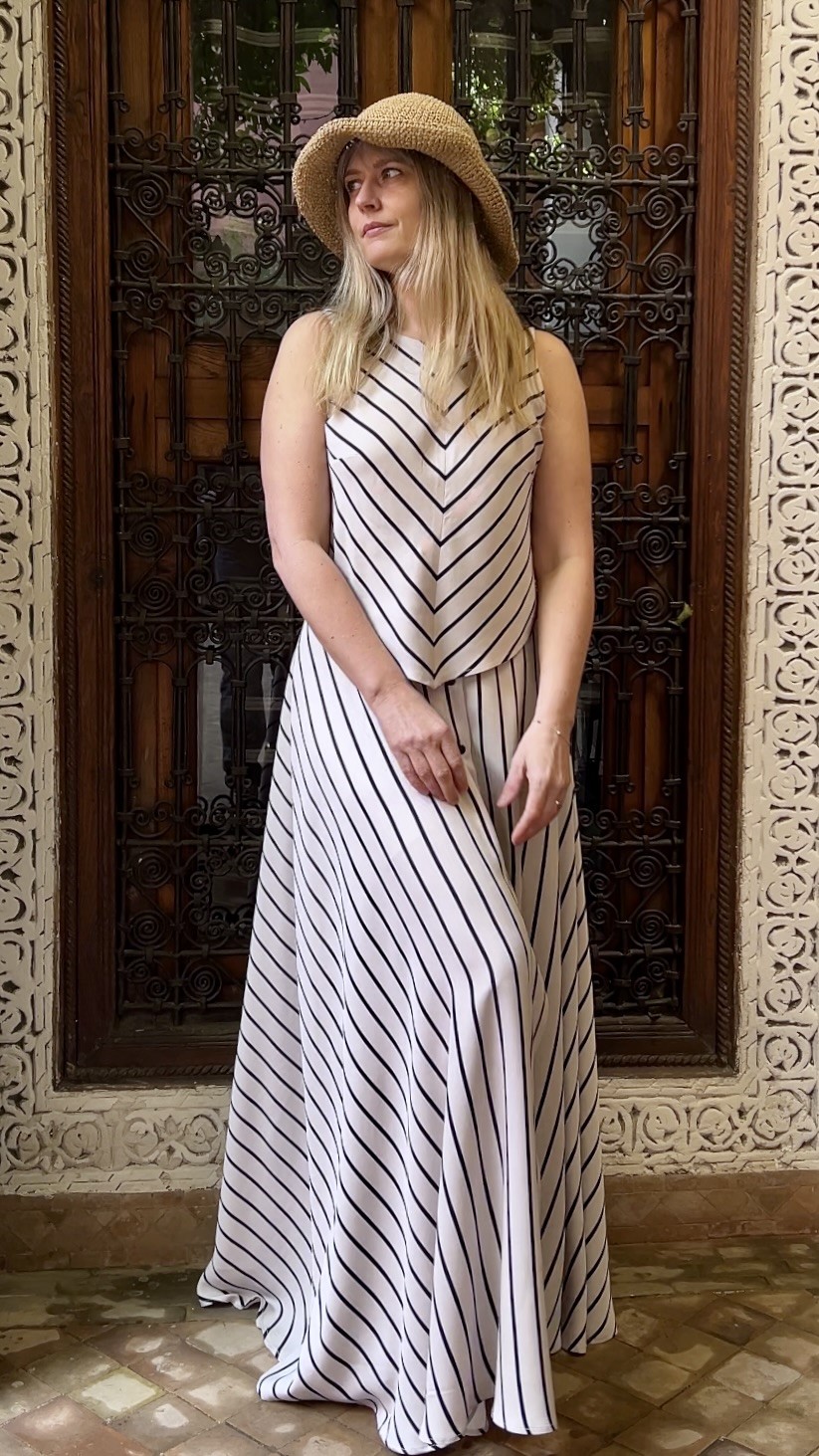 Elegancka i niezwykle kobieca długa spódnica wykonana w 100% z lekkiej, oddychającej wiskozy. Beżowa baza przełamana subtelnymi czarnymi paseczkami nadaje jej ponadczasowego charakteru i sprawia, że świetnie sprawdzi się zarówno w codziennych stylizacjach, jak i na bardziej wyjątkowe okazje.